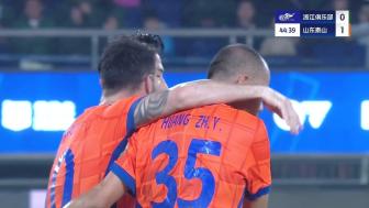 [进球视频]泰山先拔头筹!黄政宇禁区外远射破门随后一路滑跪怒吼🫢