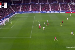 遭绝杀!皇马1-2奥萨苏纳2分领跑 库尔图瓦送点维尼修斯破门