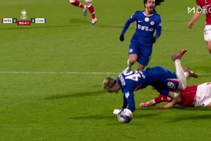 [进球视频] 切尔西1-2再次落后!加纳乔头球解围不远,道尔跟进打门边线破门