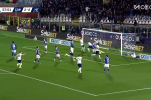 [进球视频] 国米2-2扳平!科莫解围失误+门将离谱出击!图拉姆吊射空门双响